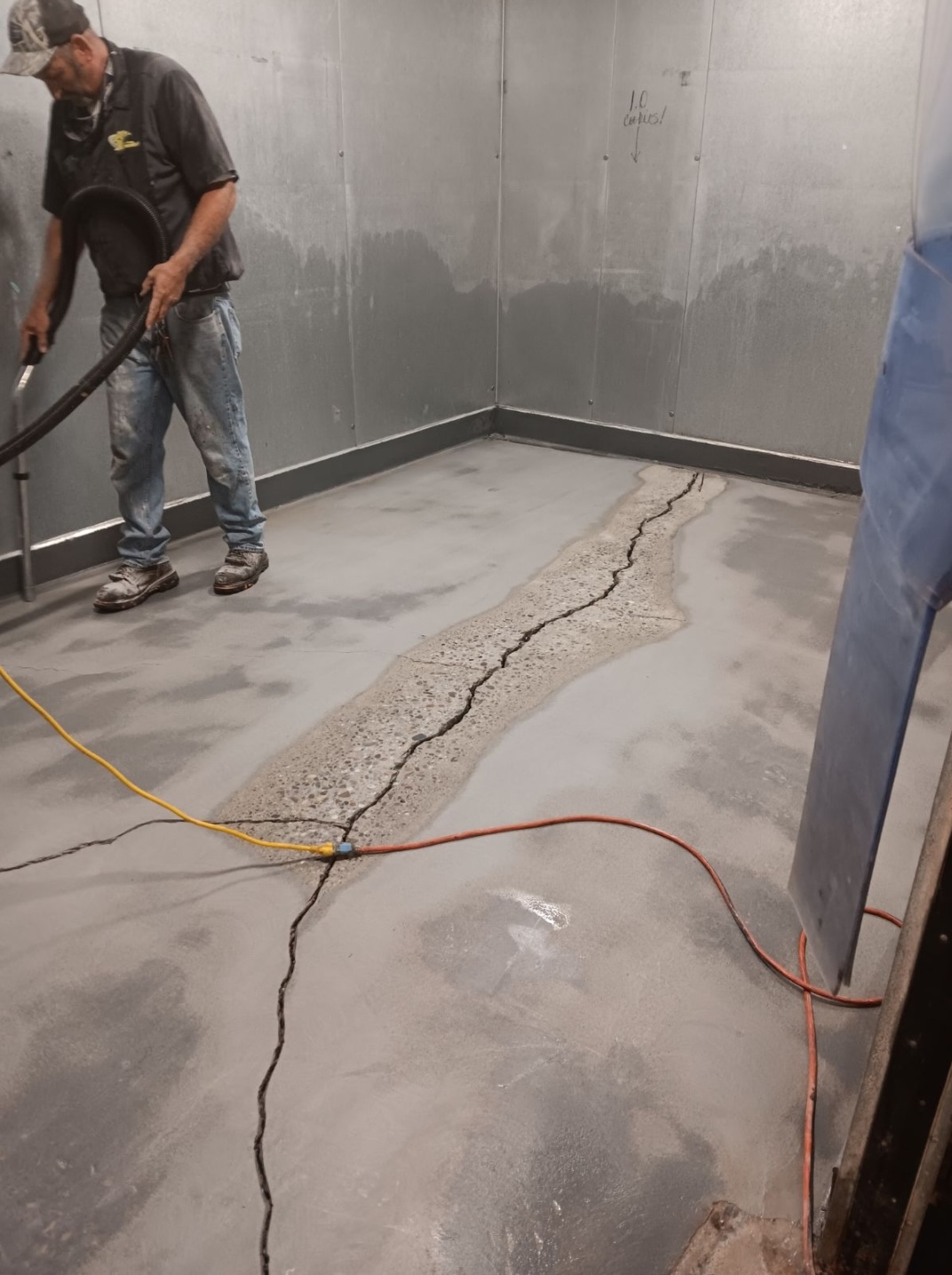 Repairing a bowed concrete floor.